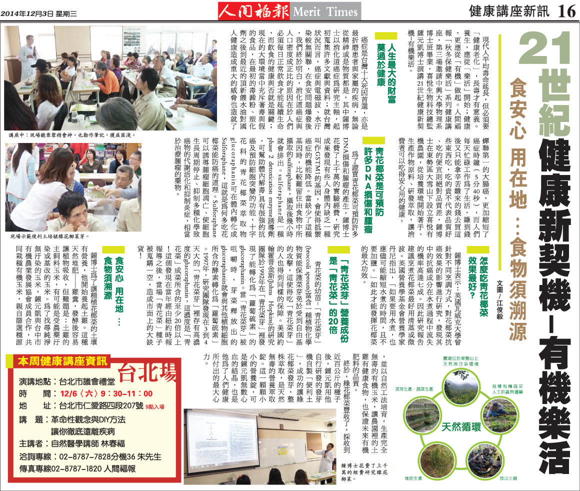 感謝人間福報 於 中華民國104年12月3日報導 放大閱讀